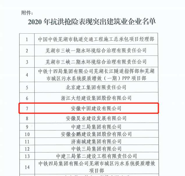 近日,蕪湖市住房和城鄉(xiāng)建設(shè)局對(duì)2020年度抗洪搶險(xiǎn)表現(xiàn)突出企業(yè)進(jìn)行了表彰。