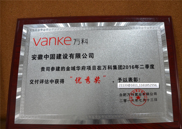 近日,由公司承建的合肥萬(wàn)科金域華府項(xiàng)目傳來(lái)捷報(bào),在萬(wàn)科集團(tuán)2016年二季度交付評(píng)估中獲得“優(yōu)秀獎(jiǎng)”,合肥萬(wàn)科置業(yè)有限公司對(duì)我公司予以表彰。此獎(jiǎng)項(xiàng)既是對(duì)公司各項(xiàng)施工質(zhì)量的肯定,也是對(duì)公司項(xiàng)目管理團(tuán)隊(duì)在項(xiàng)目交付過(guò)程中的配合度的認(rèn)同。